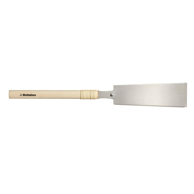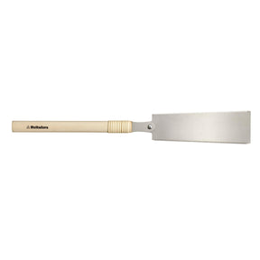 A traditional Ryoba saw with a wooden handle for the authentic feeling. The saw has a 0.5 mm thick blade made from SK5 steel manufactured in Japan. The thin blade provides high flexibility and precision for perfect cuts when making furniture's etc. The blade on a Ryoba has two different grindings in order to perform both when cutting along and across the fibers in the wood, Rip-cut & Cross-cut. The grinding for pulling the saw makes it possible to create precision cuts with a very thin blade together with a minimal force. The teeth is hardened for maximum life span and sharpness. The blade is antirust treated, do not forget to clean the blade and protect it with some oil to maintain the protection over time.