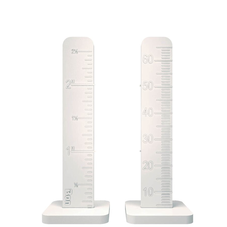 - One side is graduated in millimeters from 5 to 65 mm